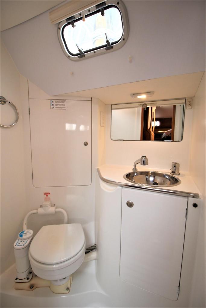 She features two aft cabins with double berth, one large master cabin with double berth and ensuite heads, second heads in the quarter, large galley with refrigerator, saloon convertible to double berth, nav table. USB sockets and fans in each cabin.